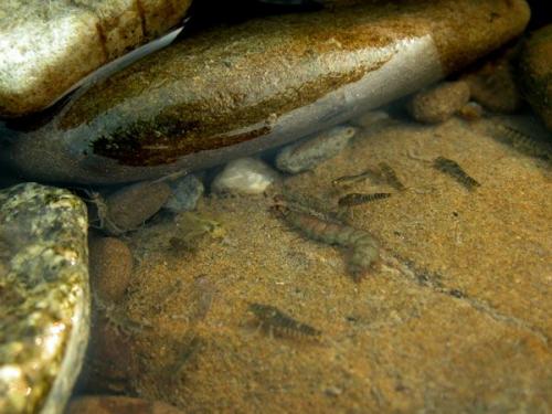 Jętki uciekaj± przed larw± Rhyacophila.