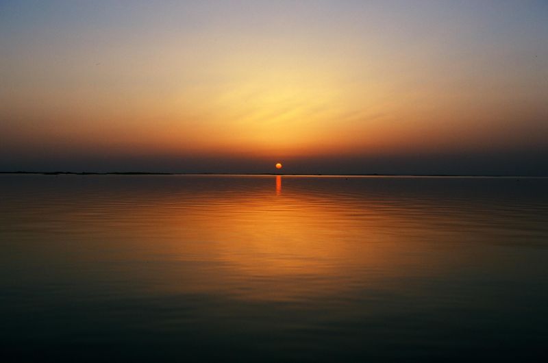 Jeziora Nasera - sztuczny zbiornik zaporowy powstały w wyniku przegrodzenia Nilu Wysok± Tam± Asuańsk± w 1960r. - Zachód słońcal