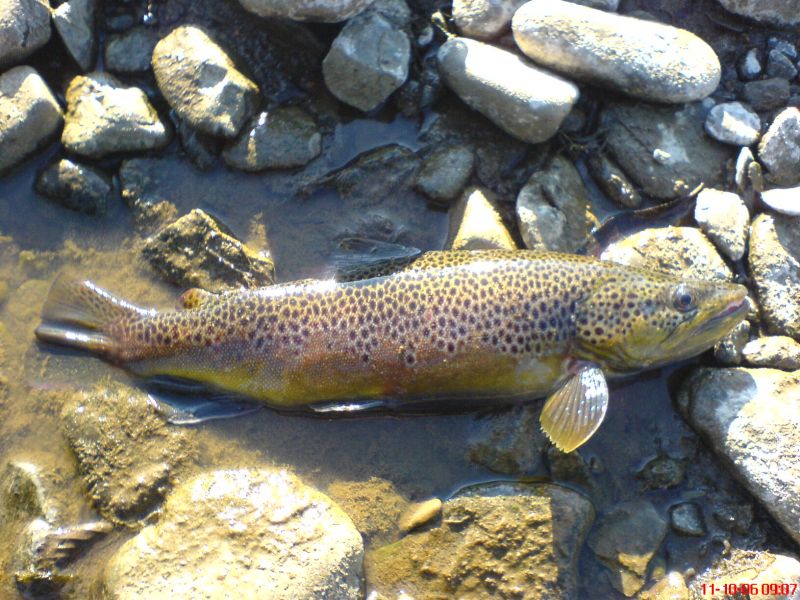 Ten pstr±żek(około 46cm),wyskoczył z wody na wysepkę przy uj¶ciu Hoczewki do Sanu. Był koniec pażdziernika. Zawracali¶my go pięć razy do wody,aż w końcu "wepchnęli¶my wariata w jamę z prawej strony wyspy.