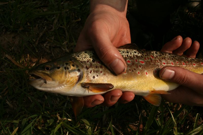 Brał 2 razy. Za pierwszym zerwał muchę ale za drugim sie udało. Jak go wypuszczałem obiecał, że z weĽmie jeszcze kiedy¶