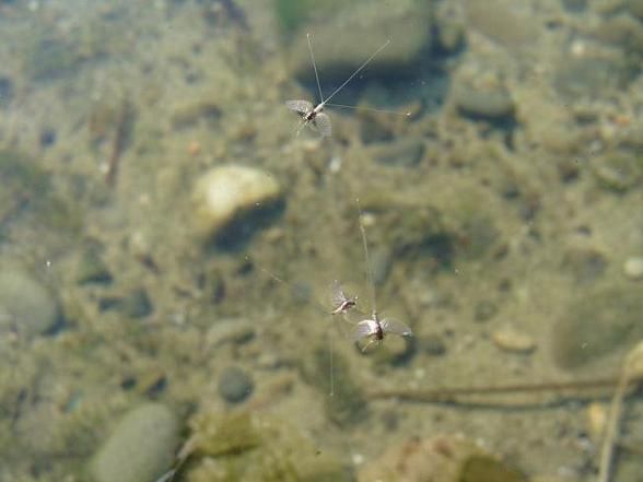 małe muszki zbierane przez ryby z powierzchni wody.