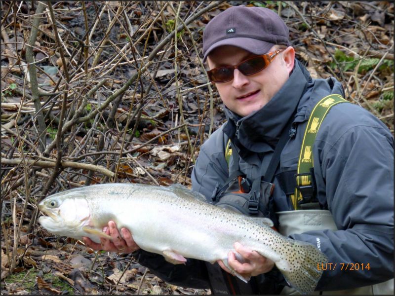 | Komentarz autora: | Tęczak złowiony na odcinku no-kill - najlepszy przykład na to że jedna ryba może dac rado¶ć kilku wędkarzom a kilkunastu innym potargać zestaw je¶li się tylko o ryby dba i wypuszcza na wolno¶ć zamiast zjadać. Zdjęcie autorstwa R. Adamskiego (dziękuję !). |