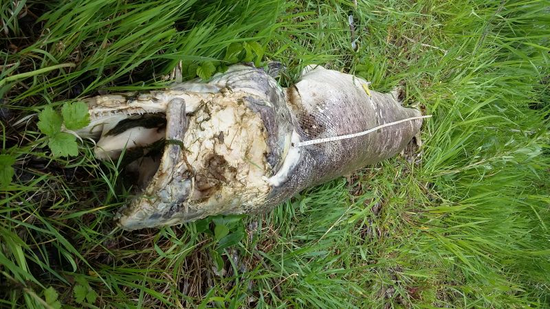 Wg wszelkich poszlak padła po tarle, ogon cały zdarty. Szkoda Rybyale ale takie jeszcze bywaj±. 130cm!