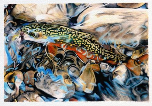 Rysunek wykonany kredkami akwarelowymi na papierze o wymiarach 40 x 31cm.