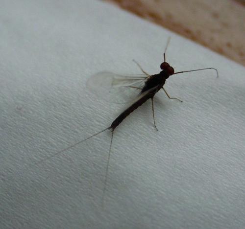 Skrzydełka delikatne, można powiedzieć przeĽroczyste więc jasno popielate piórko CDC powinno wystarczyć. Wysoko¶ć skrzydełka ok 7mm. Troszkę krótsze niż całkowita długo¶ć tułowia.