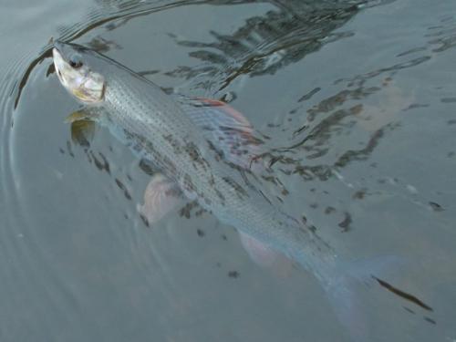 Lipień złowiony na jęteczkę #18 przypon 0,08 mm i wędkę Shakespaera Agility 2 #4 10'0"