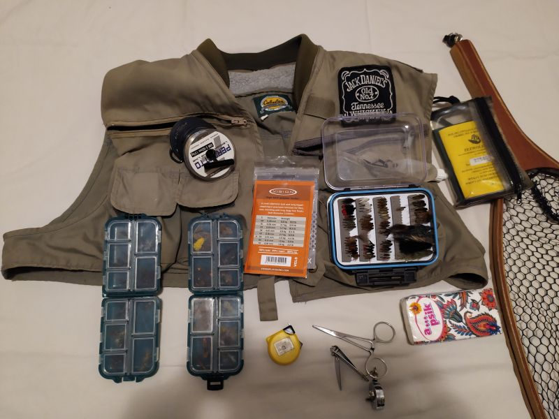- żyłki przyponowe - suche jętki - suche chru¶ciki - przypon koniczny - miarka, szczypce, c±żki - husteczki - mokre i nimfy - karta wędkarska - podbierak na magnes na plecach
