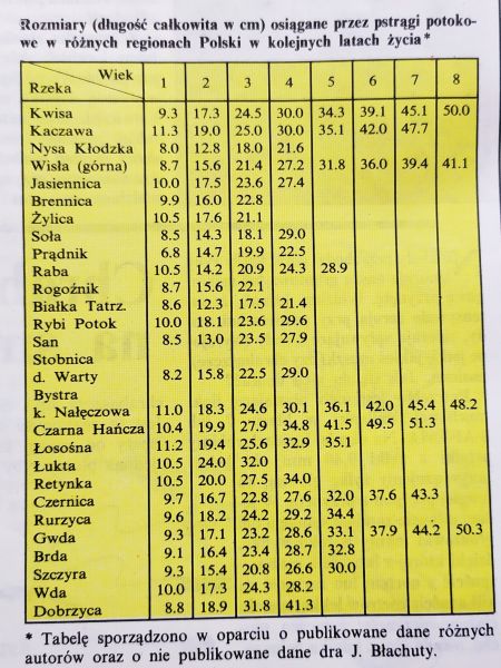 Tabela rozmiarów pstr±gów potokowych