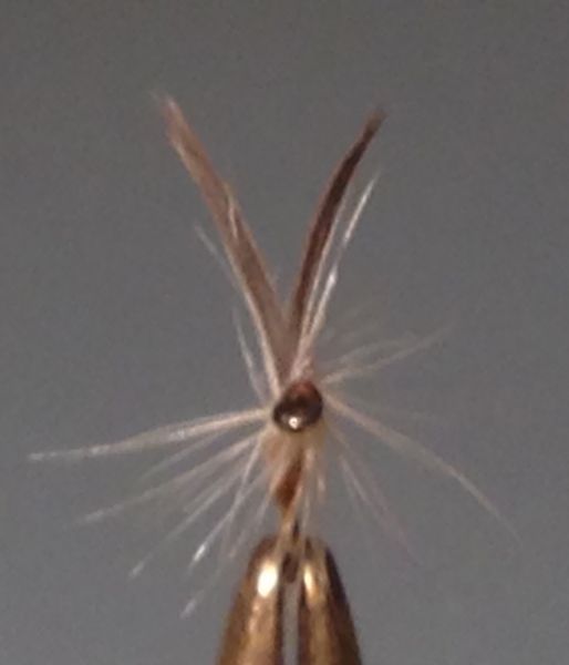 | Komentarz autora: | Wielko¶ć haczyka ok #18. Zwróćcie uwagę na pięknie zrobione skrzydełka z lotek kaczki, pięknie wykończon± szelakiem główkę i nasadę ogonka, obfity i niby troszkę przydługi ogonek który doskonale imituje wylinkę z której "wyszła" sucha mucha. Jeżynka również bardzo ładnie wykonana. |