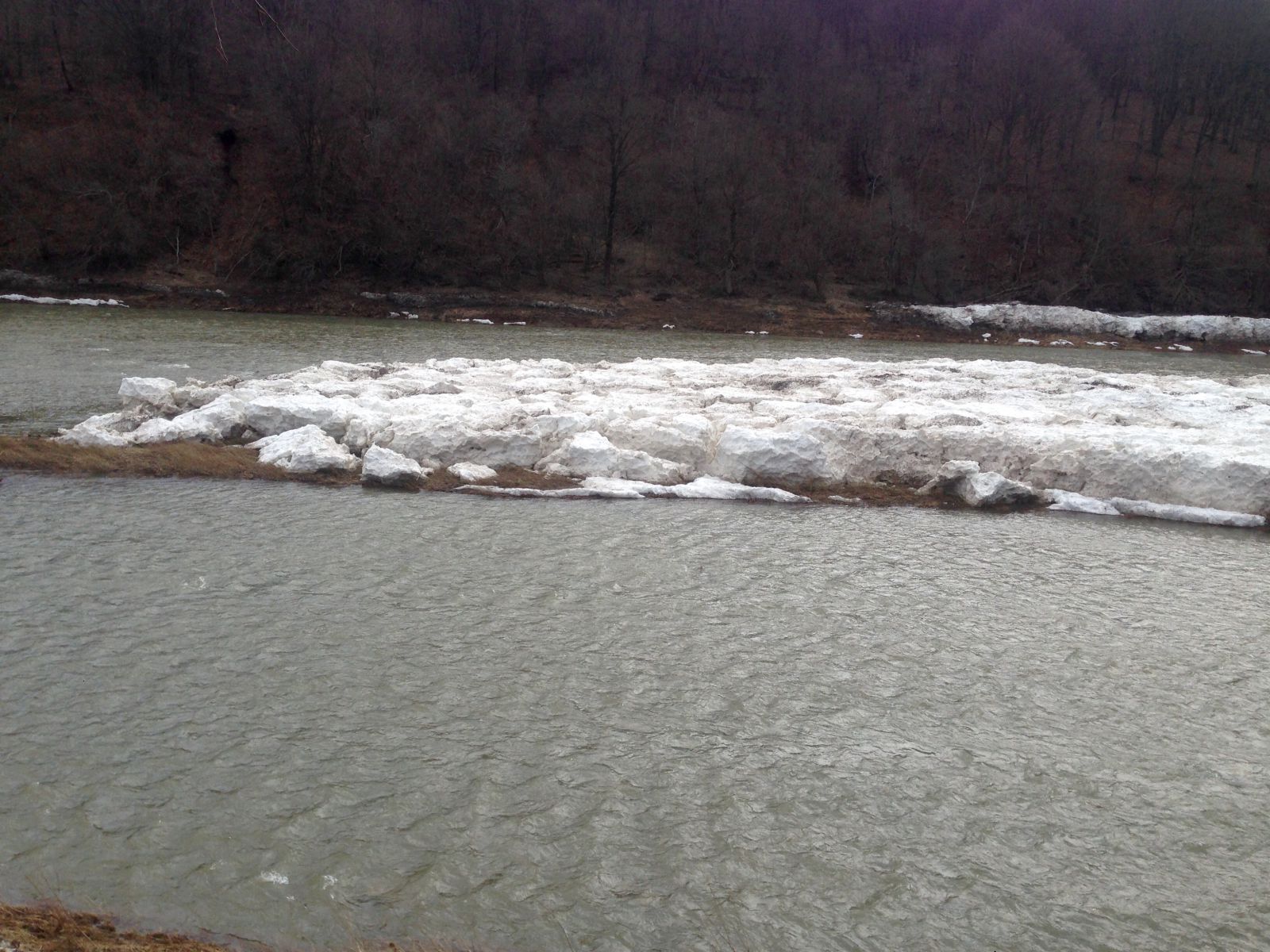 Góra ¶niegu w korycie rzeki San.