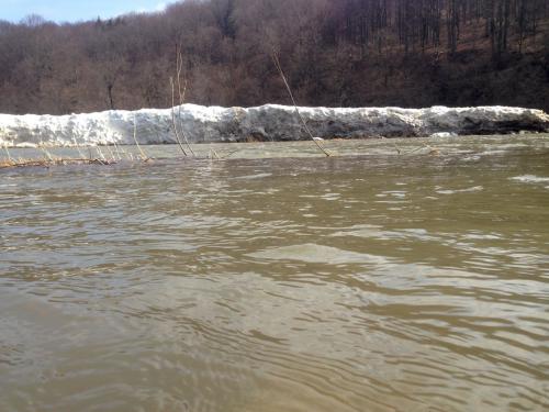 Góra ¶niegu w korycie rzeki San. Ten ¶nieg miejscami ma ok 2m wysoko¶ci.