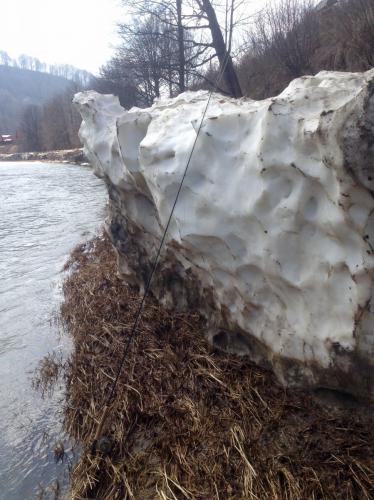 ¦nieg przy burcie brzegowej rzeki. Musiało go tu być bardzo "grubo".