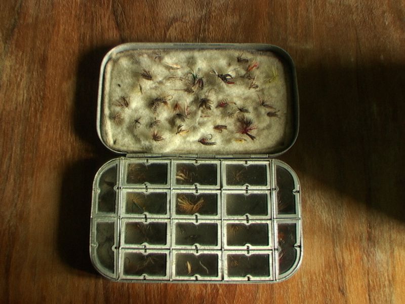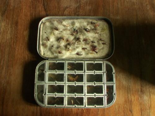 Aluminiowe pudełko z antycznymi muchami z Essex w Anglii, których zdjęcia zamie¶ciłem w katalogu much.