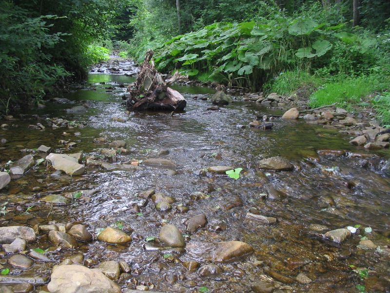 W okolicach Pcimia wpada kilka małych rzeczek o to jedna z nich.Za następnym zakrętem widziałem całkiem niezłego potokowca-czmychn±ł pod korzeń i na pewno tam jest.