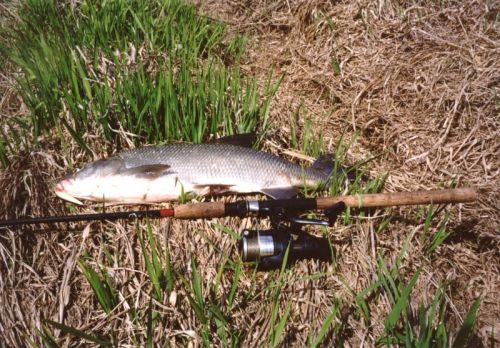 3 dniowy trening przed zawodami. Orda - ¦cinawa Dzień 2 Boleń 5.20kg (97cm). Wędzisko Shimano Catana 10-30, plecionka 0,18 Spider padł na czarnucha. Pozdrowienia dla Macka Wilka, Prezeza Klubu Muchowego Kwisa i chłopaków.