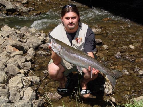 Tomek z jednym z kilku zlowionych steelhead'ow tego dnia.