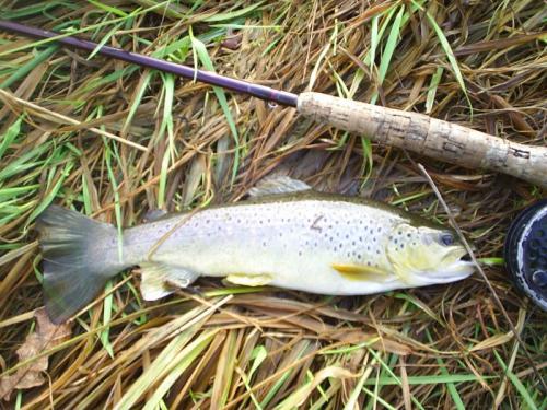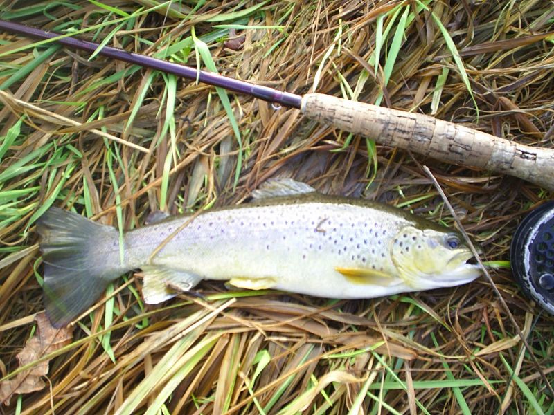 złowiony na streamerka ....lezy dosc spokojnie ale tylko jak zrobiłem fote zaczoł wariowac i sam wrucił do wody ..