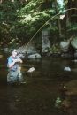 Na jednej z tamek Kazo łowi miarowego lipienia. Potem nie ma już gdzie łowić. Plażowicze kąpią się we wszystkich tamkach.