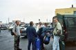 Lądujemy o ósmej rano. Chłodno, szaro i mży deszczyk. Przy wyjściu z samolotu zabierają nam paszporty i każą się zgłosić w budynku lotniska po zezwolenie na wjazd do miasta. Idziemy przez płytę w kierunku zrujnowanych budynków. Co krok dziury i kałuże wody. To już nie jest bałagan. To jak krajobraz z MadMaxa. Zbliżamy się do zardzewiałego szlabanu. Po bokach stoją ubrani w czarne garnitury młodzi ludzie. W rękach plansze : "Sztab wita rodziny ofiar wypadku helikoptera MI-6". Nastroje nam trochę opadają. Niezłe powitanie na początek wyprawy.