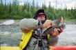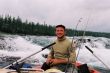 Tego dnia już nigdzie nie płyniemy. Zostajemy nieopodal na brzegu z nadzieją ze woda opadnie. Igor rusza w poszukiwaniu wioseł. My rozpalmy ognisko suszymy mokre rzeczy. Miejsce na obozowisko tym razem wybrała za nas natura. Wydawało by się, że nie złowimy tu ani jednej ryby. Sławek zbroi muchówką I rzuca ciągnie lipienia za lipieniem. Wieczorem postanawiam obrzucać duł, który znajdował się jakieś trzy kilometry powyżej. Łowię dwa tajmienie, ale nie duże , takie 3-5 kilo. Liczyliśmy że do rana rzeka opadnie, jednak po przebudzeniu okazało się że woda nie dość że nie opadła jeszcze poszła w górę o jakiś metr. Rzeka wyglądała groźnie . Tym razem wszyscy założyli kamizelki – wcześniej tylko Rosjanie zakładali. Rozpoczynamy. Woda jest brudna. Koledzy zaczęli powątpiewać ze da się coś złapać, ja jednak wierzyłem, że właśnie przy takiej wodzie można liczyć na prawdziwy okaz. Na potwierdzenie moich wróżb nie trzeba było czekać długo. Spotkanie z okazem miało miejsce już dwa kilometry poniżej obozowiska, w ujściu niewielkiego dopływu. Bohaterem całego zajścia był Sławek. Po zaparkowaniu pontonów zaczęliśmy rzucać z nadzieją, że coś uderzy. Ja szedłem w dół a Sławek I Robert obrzucali Ujście. Po chwili zniechęcony tym, że na dole nic nie bierze postanowiłem spróbować w ujściu. Właśnie zbliżałem się do Sławka jak ryba wzięła. Wędka wygięła się w pałąk a Sławek stara się ja ściągnąć, nawet to mu się udaje ma ją coraz bliżej wydaje się że tajmień opada z sił . Jednak było to tylko złudzenie tajmien chyba dopiero zauważył że coś go ciągnie. Obrócił się machnął parę razy ogonem , wystawiając przy tym swoje cielsko nad powierzchnię, kołowrotek zaterkotał I tyle go widzieliśmy. Odpiął się. Sławek stał zrezygnowany, nie dziwie się ryba była naprawdę olbrzymia. Trudno mi zgadywać jakiej była wielkości ale był to kolos. Sławek jednak był w stanie określić dokładnie jej rozmiary, posiada duże doświadczenie w określaniu wielkości ryby w wodzie, Jak był w Kazachstanie na sumach doszedł do takiej wprawy, że nie myli się więcej niż o dziesięć centymetrów. Ponieważ teoria Sławka jest bardzo interesująca przytoczę dwie podstawowe zasady. Zasada 1. Jak zatniesz rybę I nie czujesz ogona to ryba ma powyżej 1,5 m. Zasada 2 jak zatniesz I nic nie czujesz to na pewno ma ponad dwa metry. W tym przypadku Sławek nie czuł ogona, więc ryba miała przynajmniej półtora metra. Plus minus dziesięć centymetrów, ale z relacji Sławka wynikało, że raczej plus. Sławek odpoczywał po walce a ja próbowałem dalej, złowiłem jeszcze jednego tajmienia miał może ze sześć kilo, ale przy przeżyciach z jakimi Sławek zetknął się przed chwilą nie robiło najmniejszego wrażenia.