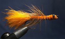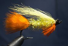 Muchy stosuję duże, w jaskrawych kolorach, na hakach łososiowych wielkości 1/0-5/0, najczęściej jednak 2/0. Podstawowe materiały, których używam do robienia trociowych much to koza, królik, marabut, lis. Skrzydełka warto wzbogacić odrobiną Crystal Flashu. Muchy często wyposażam w niewielkie blaszane oczy z łańcuszków, lub w razie potrzeby dociążam ołowianymi “mundkowymi” oczami. Przy konstruowaniu much trociowych warto eksperymentować z materiałami, kolorami, czy wielkością, bo troć miewa różne gusta i często atakuje nawet bardzo dziwne przynęty. Ponizej przedstawiam kilka sprawdzonych wzorów much, na które złowiłem najwięcej ryb. Są to muchy “prosto” z mojego pudełka, wiec wybaczcie drobne niedoskonałości.