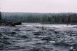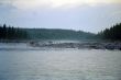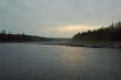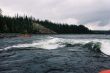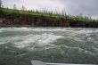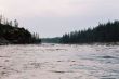 Przez noc wody przybyło jeszcze pół metra. Odbijamy dość późno. Woda bardzo zmącona i płynie znacznie szybciej. Na progach bardzo się burzy. Ryby prawie nie biorą. Towarzyszy nam drobny siąpiący deszczyk. Dobrze, że przeszliśmy to długie bystrze wczoraj. Dzisiaj woda tam jest mocno spieniona i byłoby znacznie trudniej (ciekawiej?).