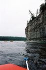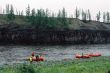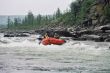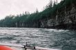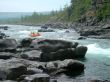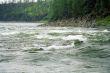 Sasza z Lioszą idą w głąb zobaczyć co jest grane. Wracają po dziesięciu minutach. Bystrze ma około kilometra długości - IV klasa WW. Zakładamy kamizelki. Rzeka zwęża się do dwudziestu metrów i grzmi. Duży spadek popędza ją w dół. Ściany po bokach niewysokie (10 m). Koryto usiane wielkimi głazami. Woda się na nich burzy i rozbija, a miejscami fale przekraczają metr wysokości. Płyniemy w stumetrowych odstępach. Piękna jazda. Jeszcze nie widziałem tak długiego bystrza. Przechodzimy ten kilometr w trzy minuty. Za krótko.... Obyło się bez nieprzyjemnych przygód. Za nami, co prawda Marek z Felkiem utknęli na jednym z kamieni, ale po kilku minutach zeszli. Czyżby moje przeczucia były nietrafione?