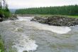 Sasza mówi, że tuż poniżej progu jest bardzo głęboka jama wymyta w skałach. Dwa lata temu łowili tutaj ogromne ciemno ubarwione lipienie. Teraz tam biała kipiel....