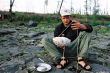 Robert kładzie go w "salonie". Ciut, ciut za blisko położył, a może obudowa bardziej wrażliwa? Zgodnie z prawami fizyki, dyktafon zmienił stan skupienia, a następnie spłynął prosto w ogień, skwiercząc i dymiąc. Elektronika jakoś się nam słabo sprawdza na tej wyprawie. Sytuacja w salonie powoli się klaruje. EOS Rebel i EOS 10 raczej nie wrócą już do użytkowania. EOS 5 jeszcze rokuje. Wszystko już działa za wyjątkiem autofocusa. No i centralne pokrętło podejrzanie skrzypi.