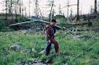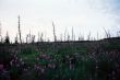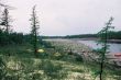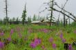 Brzeg powyżej obozowiska tonie w kwitnącej różowo wierzbówce. Drzewa czarne i osmalone. Pożary lasów często się tutaj zdarzają. Wygląda na świeży pożar. A może to było bardzo dawno? Kto to wie?