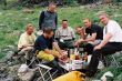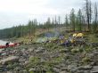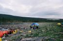 Rozbijamy namioty wysoko na skarpie pomiędzy drzewami na porośniętym mchem rumowisku dużych kamieni. Równego kawałka nie udaje się znaleźć, więc bierzemy, co jest. Gorący obiad i "otkrywajetsa sałon Kanona" jak mówią Saszki.
