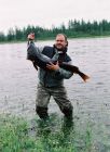 Wyjmuje największy wobler z pudełka. Ukko 22cm i rzucam daleko. Jest! Kilka skoków, krótki hol i trzymam go w objęciach (14 kg). Wszystko dzieje się w ciągu dwudziestu minut i w promieniu trzydziestu metrów od ujścia potoku.