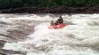 Woda przewala się przez próg i spada w białą kipiel. Niektóre fale dochodzą do dwóch metrów wysokości ( V klasa WW). Spieniona, rozfalowana woda ciągnie się w dół rzeki co, najmniej przez 150 metrów. W kilku miejscach widoczne duże wsteczne prądy. Dostać się w taką dziurę pontonem oznacza poważne kłopoty. Może bardzo mocna lina i system bloczków zamontowanych na brzegu wyciągnąłby stamtąd ponton? Może tak, może nie?