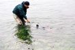 Pierwsze rzuty i Maciek holuje rybę. Kilka minut później ląduję ja przy brzegu. Piękna sztuka - 15 kilogramów. Robimy zdjęcia i wypuszczamy. Ryba długo stoi w zalanej woda trawie u naszych stóp.