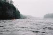 Przycupnęliśmy pontonem przy brzegu i czekaliśmy zwróceni plecami do wiatru. Lało pół godziny i potem coś się zmieniło. Mijamy fantastyczne miejsca i nic nie bierze, nawet lipienie. Ryby się przestraszyły? Zrobiło się chłodno.