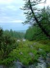 Upływające lata zamieniły góry w łagodne, kamieniste wzgórza poprzecinane dolinami rzek, wodospadami (najwyższy ponad 100m) i setkami rynnowych jezior (niektóre dochodzą do 400m głębokości). Surowy klimat i całkowity brak dostępu dla konwencjonalnych środków transportu uchroniły to miejsce przed ludzką kolonizacją. Żyją tu niedźwiedzie, rosomaki, wilki, lisy polarne, sobole, łosie i renifery. Na szczytach gór ukrywają się ostatnie na świecie owce śnieżne (Orvis nivicola borealis). Zostało ich zaledwie kilka tysięcy. Zwierząt jest tutaj niewiele. To kraj surowy także dla nich. Uważnie rozglądałem się po miękkich gruntach w okolicy obozów i tylko w dwóch miejscach widziałem łosia sprzed kilku dni. Marek podobno widział w oddali renifera. Niewielu ludzi tu trafia, a wędrówka pieszo po gołoborzach w górnych partiach jest bardzo uciążliwa. Wiele rzek jest niespławnych. Sasza opowiadał o wyprawie czterech młodych ludzi przed kilku laty. Szli przez góry z mapą, ale nie mieli GPSu. Doszli do rzeki i niewłaściwie ją rozpoznali na mapie. Mieli składane katarafty i postanowili popłynąć. To nie była rzeka o której myśleli.... Czekał na nich trzydziestometrowy wodospad. Dwóch pierwszych zginęło. Dwóch z tyłu w ostatniej chwili wyskoczyło na skały.