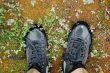 Dalej nie pójdziemy. Pionowa skała wyrasta z wody na dwadzieścia metrów w górę. Wspinamy się pod górę do lasu. Podłoże porośnięte trawą jest bardzo nierówne i pełne wypełnionych wodą dziur. Rumowisko skalne przykryte cieniutką warstewką ziemi.