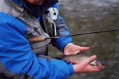 brakuje tylko w waszych relacjach szacunku dla samej ryby ,w naszym gronie nie bierzemy ryby w rece a nawet wielkie pstragi odczepiam trzymajac za dolna szczeke , polecam uwadze.