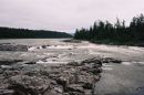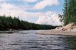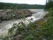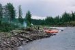 Rzeka wcale nie zwalnia. Płynie ostro i co kilka kilometrów przechodzimy przez mocno rozhuśtane bystrza. Zmienia się charakter skał wokół. Znika wulkaniczny bazalt i pojawiają się warstwowo ułożone skały osadowe. Wyszliśmy z gór Putorana.