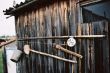 Trzy kilometry niżej dobijamy do brzegu. Obok starej aluminiowej motorówki suszą się sieci. Wita nas napis na burcie: "Zdies był Kola".