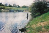 Każdy wchodzi do „swoich” miejsc i zaczynamy. Pierwsze kilkadziesiąt minut biczowania wody u mnie bezowocne. Ale w końcu mam pierwsze, silne pobicie. Zacięta ryba szybko się poddaje okazując się sporym...okoniem. Niestety dalsze obławianie tej części zalewu nie przynosi skutku. Zniecierpliwiony wychodzę z wody i postanawiam poznać miejsce, gdzie zbiornik jest zasilany dopływem rzeki Malše – potokiem Kamenice.