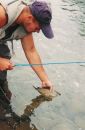 Wskakujemy w spodniobuty i montujemy muchówki. Gdy to robimy, zatrzymuje się przy nas potężna „Tatra” i wychodzi z niej uśmiechnięty...Jaromir (jak zaraz się okaże) Jaromir jest wędkarzem, jednak jego pasją jest karpiowe wędkarstwo a także połowy dorszy w Bałtyku, nad którym co roku spędza dwa tygodnie urlopu. Jak sam mówi ciągnie go do muszkarstwa ale boi się, że to „neni snadne” (trudne) Próbujemy go przekonać, że to nie jest to prawdą, ale jakoś nie chce uwierzyć. Trochę jeszcze rozmawiamy i Tatra rusza w dalszą drogę. Jaromir jest pracownikiem pobliskiej żwirowni.