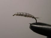 Piękna larwa Ryacophila... Ale ja łowię na nią w głębokch i spokojnych plosach, gdzie obciążenie bardzo utrudnia. Dla stosunkowo dużej imitacji nawet drucik miedziany wydaje się zbyt ciężki. Ja bym w miejsce pierścionków ołowianych sugerował koraliki lub pierścionki z izolacji zdjętej z elektrycznych przewodów. Może się czepiam, ale na obciążaną Ryacophila w prądach miałem bardzo mizerne wyniki.