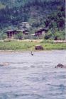 Po obejrzeniu hotelu jedziemy dalej nad wodę. Dorgji zostawia mnie przy moście i sugeruje abym podążał prawym brzegiem w górę Paro Chhu. A mam jakieś inne wyjście? Jestem z natury legalistą, ale chęć odkrywania nowego bierze górę i postanawiam nagiąć jednak troszkę surowe przepisy łowiąc w miejscu gdzie teoretycznie nie powinno mnie być. Okazuje się jednak, że miejscowe moce mieszkające w zawieszonym nad doliną na wysokości 3500 m n.p.m. klasztorze „Tigers Nest” /Tygrysie Gniazdo/, nie pozwoliły mi zejść na złą ścieżkę. Prawdę powiedziawszy nie pozwoliły mi zejść na jakąkolwiek ścieżkę! Przez prawie godzinę szwendam się po groblach pomiędzy polami ryżowymi, podwórkach kolorowych domków i dróżkach. Pokonuję głęboką dolinę, która wygląda jakby miała na sumieniu już nie jedne muszkarskie istnienie i walczę z kłębowiskami kolczastych krzaków. Mogę sobie tylko pooglądać płynącą w dole Paro Chhu. Podobnie jak opisywane wcześniej odcinki siostrzanej Thimphu Chhu, rzeka przeciska się w szczelnym kordonie krzaków. Jak żyję jeszcze nie widziałem czegoś takiego! Woda na przysłowiowe wyciągnięcie ręki, a jednak niedostępna. Takie lizanie ciastka przez szybę... Chwilami wydaje mi się, że słyszę szyderczy śmiech demonów zaklętych w kamienie na stokach góry, do której kilometrowych, pionowych skał, wręcz przyklejony jest klasztor. Nie mam zamiaru walczyć z mocami nadprzyrodzonymi i rejteruję. Gdy podążam wzdłuż drogi prowadzącej do nieodległych ruin Druk Yelk Dzong, mam okazję podziwiać Bhutańczyków szyjących z łuków do odległych o prawie 100 metrów tarcz. To ich sport narodowy i zastanawiam się czy w związku z dostępnością tutejszych rzek nie przebranżowić się. Może na starość...