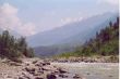 Moja „macha” uradowała się jednak po minięciu jeziora, gdy na horyzoncie ujrzałem majaczące pokryte wiecznym śniegiem szczyty, zaś rzeka zaczęła przybierać jako taki wygląd. W dalszym ciągu straszyła stromymi urwiskami i wydawać by się mogło bezdenną głębią mas spienionej wody, ale przynajmniej jej kolor zaczął budzić w moim skołatanym serduszku nadzieję. I jak się okazało, całkiem słusznie.