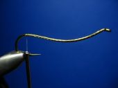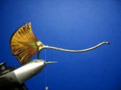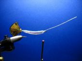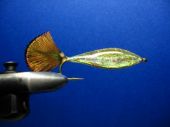 Krok 8 Jedwab następnie przywiązujemy przy ogonku, kształtując z niego profil przyszłego grzbietu rybki: |