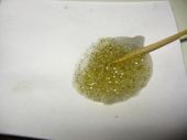 Krok 10 Zywicę epoksydową rozrabiamy zgodnie z instrukcją ( przeważnie 50/50) i dodajemy trochę brokatu. Można ją teraz lekko podgrzać nad płomieniem. śtanie się przez to bardziej płynna, co ułatwi wykonanie następnych etapów: |
