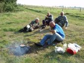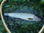 Zostałem sam. Nie miałem z sobą odpowiednich materiałów na podróbkę takiego cuda więc po prostu zrobiłem krótki przypon z kawałka żylki. Na końcu petlę rozciąłem, na to „brązka” i zielony kiełżyk i gotowe. Faktycznie, podrabiając jego ruchy miałem zaraz branie, drugie i trzecie... Okołowymiarowe lipienie brały jak najęte, na brązkę. I to na przeczesanym, przez poprzednika, odcinku rzeki. Po siódmym dałem spokój. Pojedyncze lipienie zaczęły wychodzić też na suchą, prawdopodobnie „Iron Blue Dun”. Nie chciało mi się przerabiać sprzętu. Popatrzyłem na zegarek, była trzynasta. Za pół godziny planowaliśmy obiadek, trzeba było jeszcze chrustu nazbierać. Zdecydowałem się wrócić do bazy. Wracjąc znowu skrzętnie omijałem zardzewiałe kolce płotów. I znowu ten pejzaż, jak z reklamy „Double Malt”.