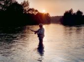 Ospały patrzę przez pokrytą parą szybę samochodu. Jak Jacek zawsze trafia po ciemku prawdziwą drogę po tych wertepach? Wyboje i kocie łby budzą mnie z każdej próby drzemki. Wreszcie polana przy moście. Mimo, że to dopiero koniec września, szron chrupie nam pod nogami. Szczękając zębami z zimna w przyspieszonym tempie wdziewamy się w manatki i bierzemy sprzęt. Rozchodzimy się, jak zwykle, każdy swoją drogą. Ostrożnie, by się nie pośliznać, schodzę z nasypu drogowegu ku rzece. Na horyzoncie przebijają się przez czubki lasu pierwsze promienie wschodzącego slońca. Ze zmroku wyłania się baśniowa sceneria: kikuty roślin powiązane są nieskończoną firanką pajęczyn babiego lata. Wieczorny chłód pokrył je wilgocią, która w mroźnej nocy przekształciła się w szron. Cała łąka błyszczy milionami kryształów we szystkich barwach tęczy. Stoję urzeczony. Pod wpływem ciepła promieni słońca z kryształów powstają krople rosy. Fascynująca, barwna metamorfoza. Dopiero teraz zauważam, że mój nestor, Hans, stoi obok mnie. Jest tak samo urzeczony jak ja. „Jak się będą kończyć moje dni, przywieź mnie tutaj”, prosi cicho. Przyrzekam, przejęty, kiwnięciem głowy. Mocniej ściskam rekojeść wędziska, czas do pracy.