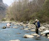 Dostałem bardzo wygodny pokój z łazienką i TV. Koszt jednej doby z wyżywieniem, tzn. śniadaniem oraz obfitą obiadokolacją (obowiązkowo dzbanek wina), to 43 euro, co uważam za kwotę niezbyt wygórowaną. Jeszcze bardziej ucieszył mnie rano widok z okna i szum rzeki oddalonej o kilkadziesiąt metrów. Zatem szybka toaleta, biegiem do baru cappuccino, dwa cornetti (ciepłe słodkie rogaliki) i mogłem szykować się na ryby. Poprzedniego wieczoru umówiliśmy się z Domenico, że rano przyjedzie jego klubowy kolega, by zabrać mnie w najciekawsze miejsca. Niestety, o umówionej porze nikt się nie pojawił. Wkrótce jednak dostałem telefon, że pan ten się spóźni i żebym sam zaczął łowić w pobliżu hotelu. Nawet było mi to na rękę, bo wolałem trochę rozejrzeć się nad wodą przed spotkaniem z takimi fachowcami. Zabrałem 9-stopową czwórkę T&T uzbrojoną w sznur pływający, pudełko z nimfami oraz pojemnik z suszem.